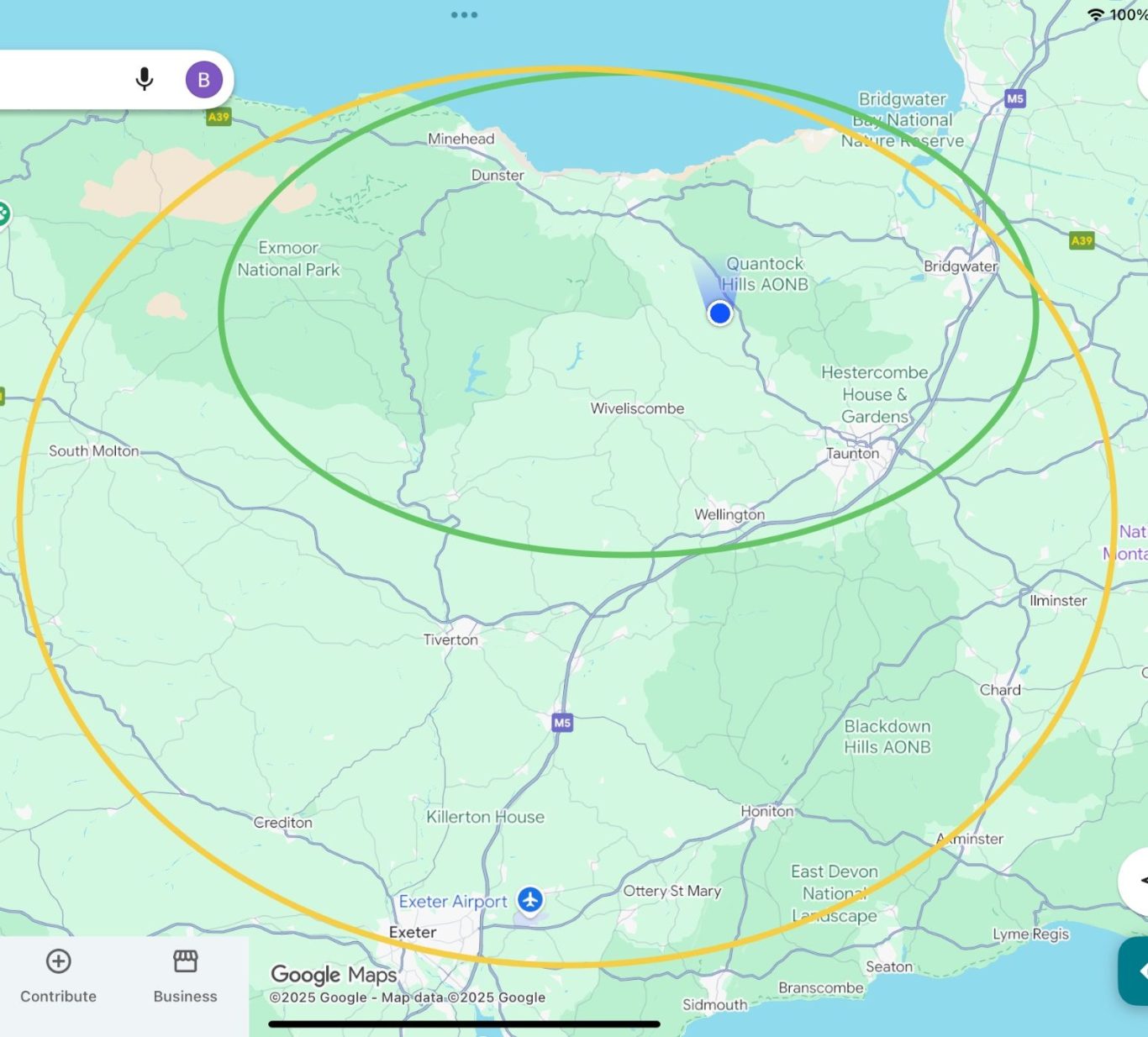 The yellow circle shows my extended zone, in this area you should be offered an appointment within two weeks.